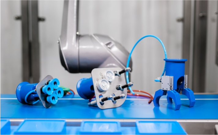 Configuramos de manera personalizada las herramientas de extremo de brazo (EOAT) para cada aplicación robótica, lo que garantiza una ejecución precisa y consistente. Los efectores finales se pueden quitar fácilmente para el saneamiento y cambiarlos para adaptarse a múltiples SKU.